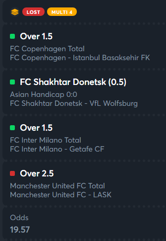 Yeah, it feels like another great day for me as well, I had a two-game parlay, on both Inter Milan ML and Man United ML, I took around the 23rd minute live, so the Inter was @ 2.28 and Man Utd @ 1.56, such an EZ one for me...