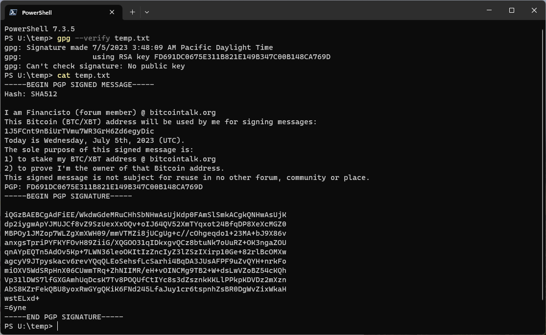 This Bitcoin (BTC/XBT) address will be used by me for signing messages: